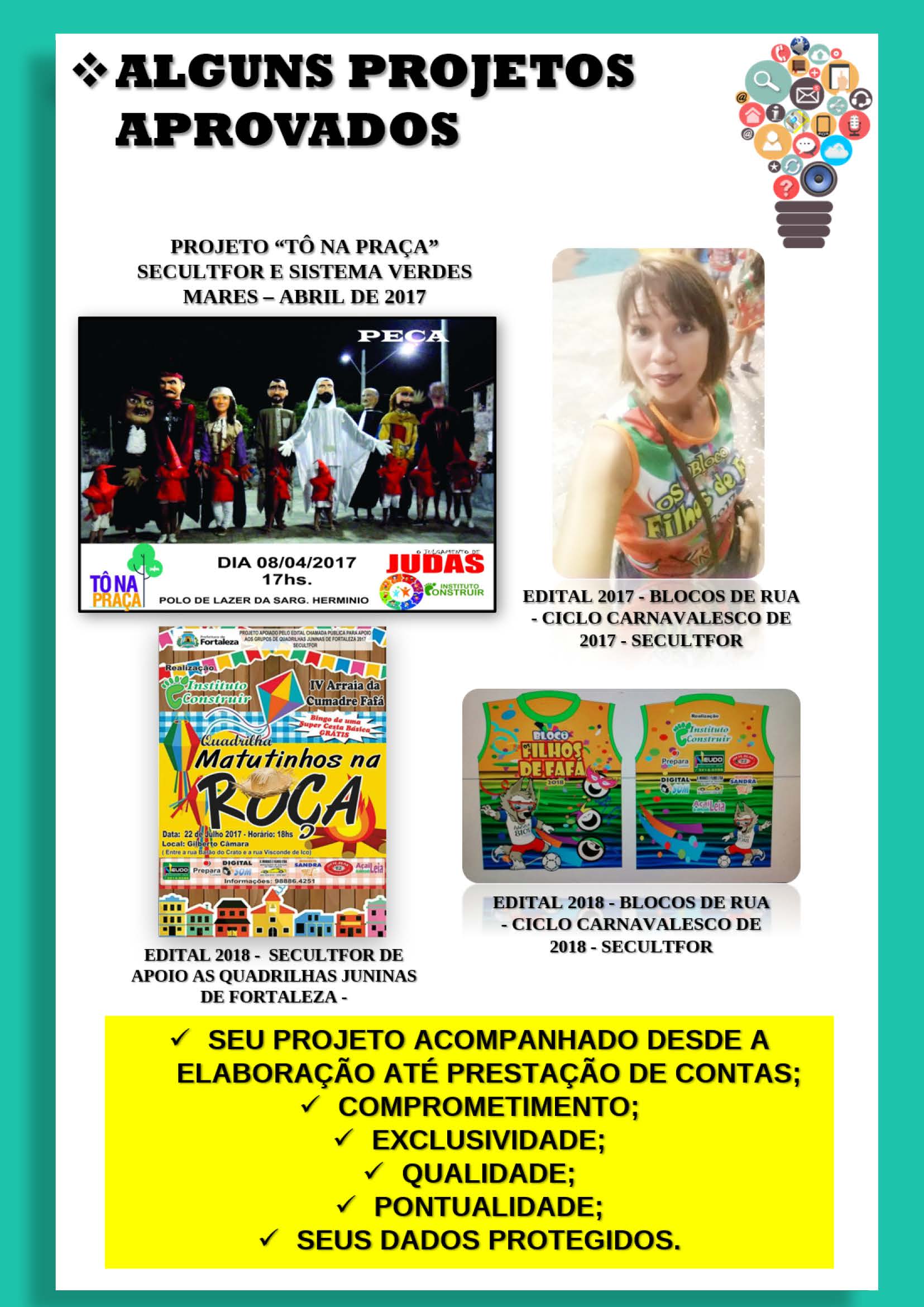 > Mais de 20 anos de experiência, mais de 3,8 milhões em projetos aprovados e mais de 1,8 milhões de reais captados.