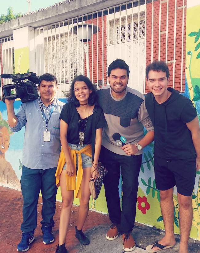 Em julho de 2017 recebi um convite da escola que estudei durante o ensino fundamental para participar de um projeto de revitalização do bairro, onde a ideia seria pintar murais nas casas ao redor, com a temática “natureza”. A experiência foi incrível, onde pude destacar meu comprometimento com a arte e a comunidade. Dias mais tarde, a TV Jangadeiro entrou em contato comigo para fazer uma reportagem sobre essa iniciativa, e junto com um amigo que também participou dessa aventura demos uma entrevista sobre o nosso processo e o projeto em si.