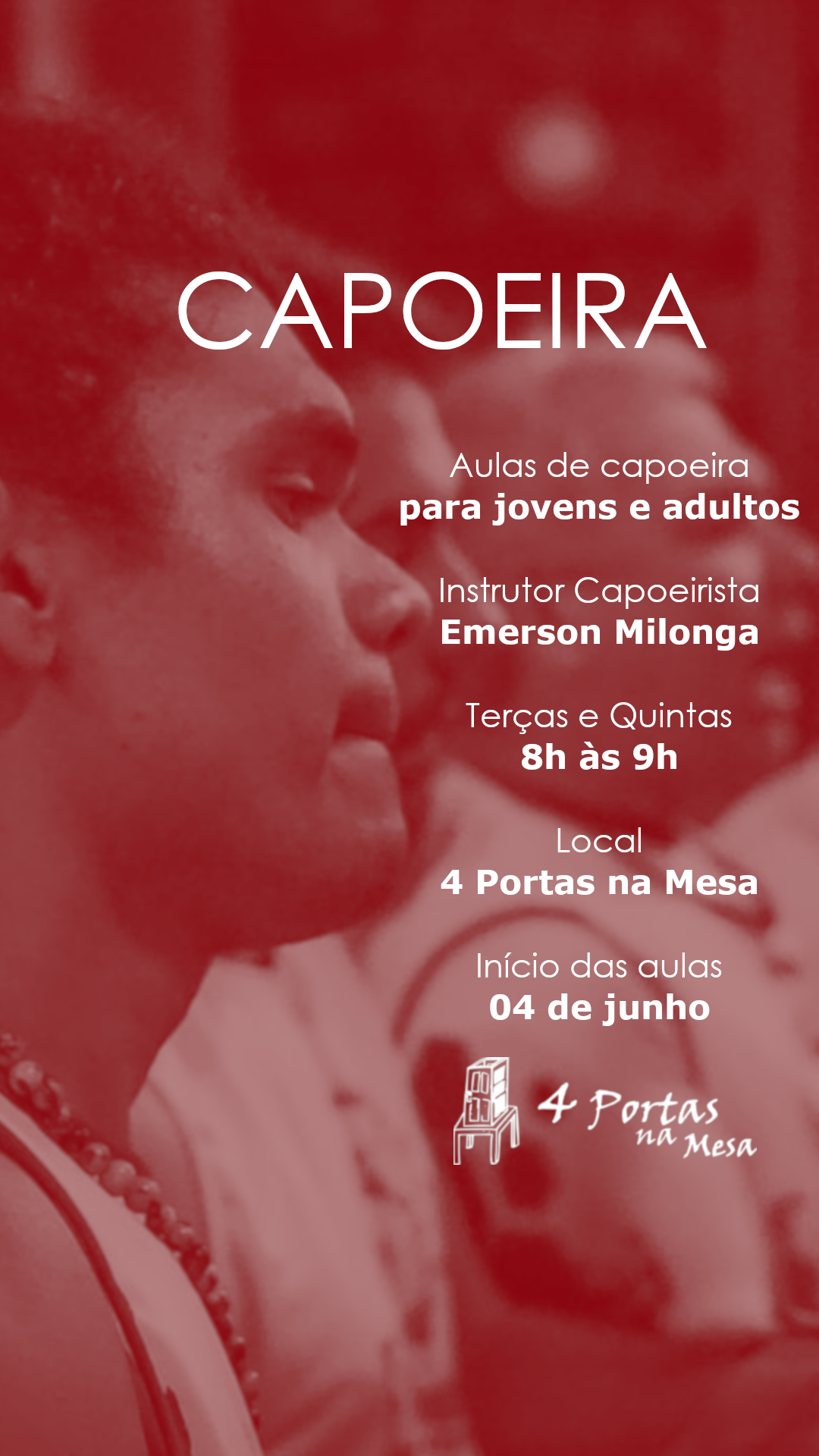 Instrutor de capoeira com 25 anos de experiência no ensino -aprendizagem na capoeira.