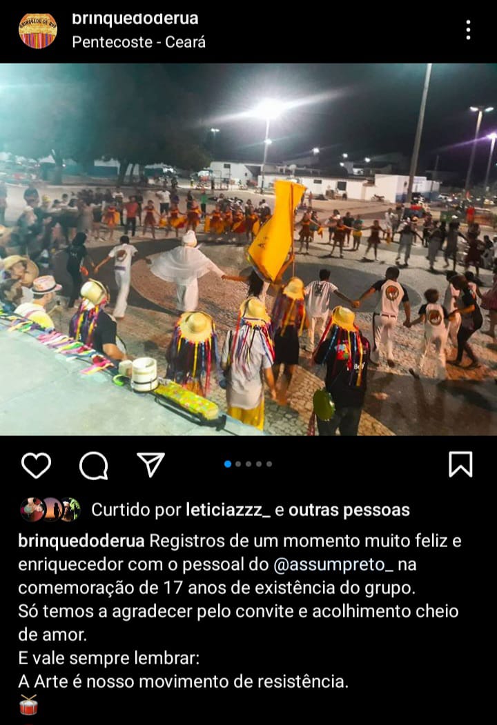 Com o Maracatu SOLAR participou de vários desfiles de carnaval, oficinas, shows e eventos. Mas é com o Brinquedo de Rua que desenvolve suas atividades culturais, tendo participado de eventos acadêmicos, shows em vários palcos da cidade, festas populares e projetos culturais e formativos em vários locais do estado, como Pentecostes, Aracati e Icapuí.
