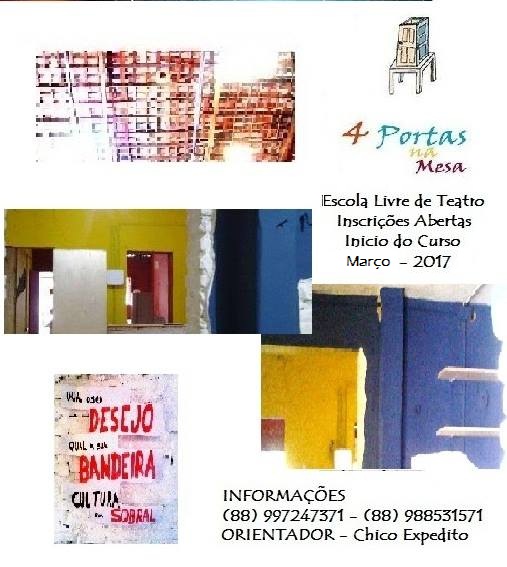 A 4 Portas na Mesa surgiu da reunião de um grupo de amigos no Rio de Janeiro (professores, atores e fotógrafos). Desde 2004, Chico Expedito participa ativamente no movimento teatral em Sobral, ocasião em que montou com elenco sobralense o espetáculo "Esperando Godot" que reinaugurou o Teatro São João. De lá pra cá, sempre esteve em Sobral ministrando cursos, oficinas, etc. Com todo potencial artístico existente em Sobral, porque não realizar um sonho antigo? O de montar a sua própria casa de produção, e a partir dela criar a sua Escola Livre de Teatro, realização quase impossível no Rio de Janeiro.Em 2014 se transfere para Sobral e nesse mesmo ano a casa começa a funcionar. Sua inauguração oficial foi em julho de 2015 com o evento 4 Dias na 4 Portas que envolvia todas as correntes artísticas existentes na cidade: Música, Artes Plásticas, Dança e Teatro. A 4 Portas na Mesa sempre teve a preocupação de fortalecer e dignificar os artistas locais e vai continuar assim.