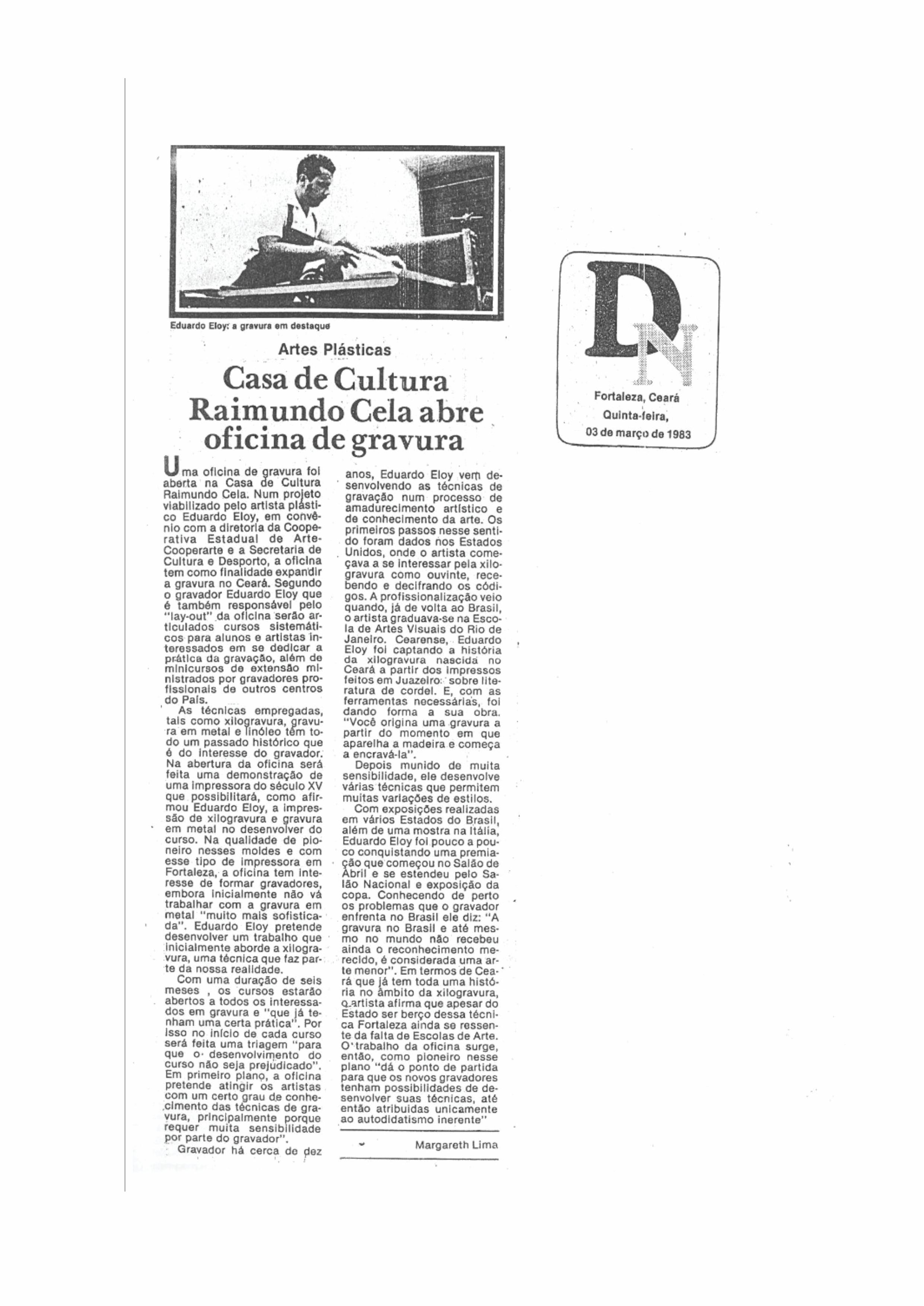 • 1983 Eduardo Eloy – Técnica Mista e Gravura, Galeria Rodrigo Andrade da FUNARTE, Rio.