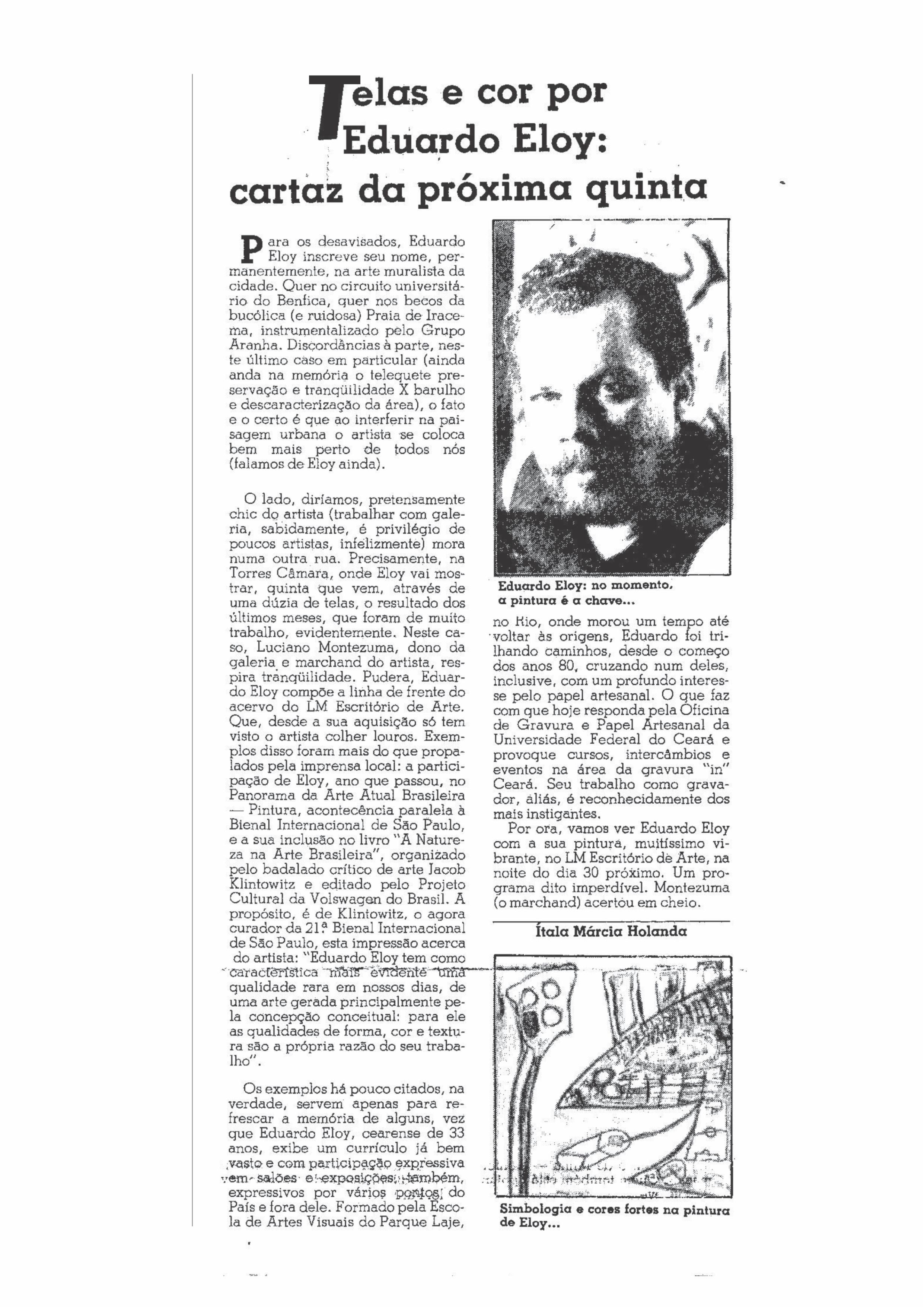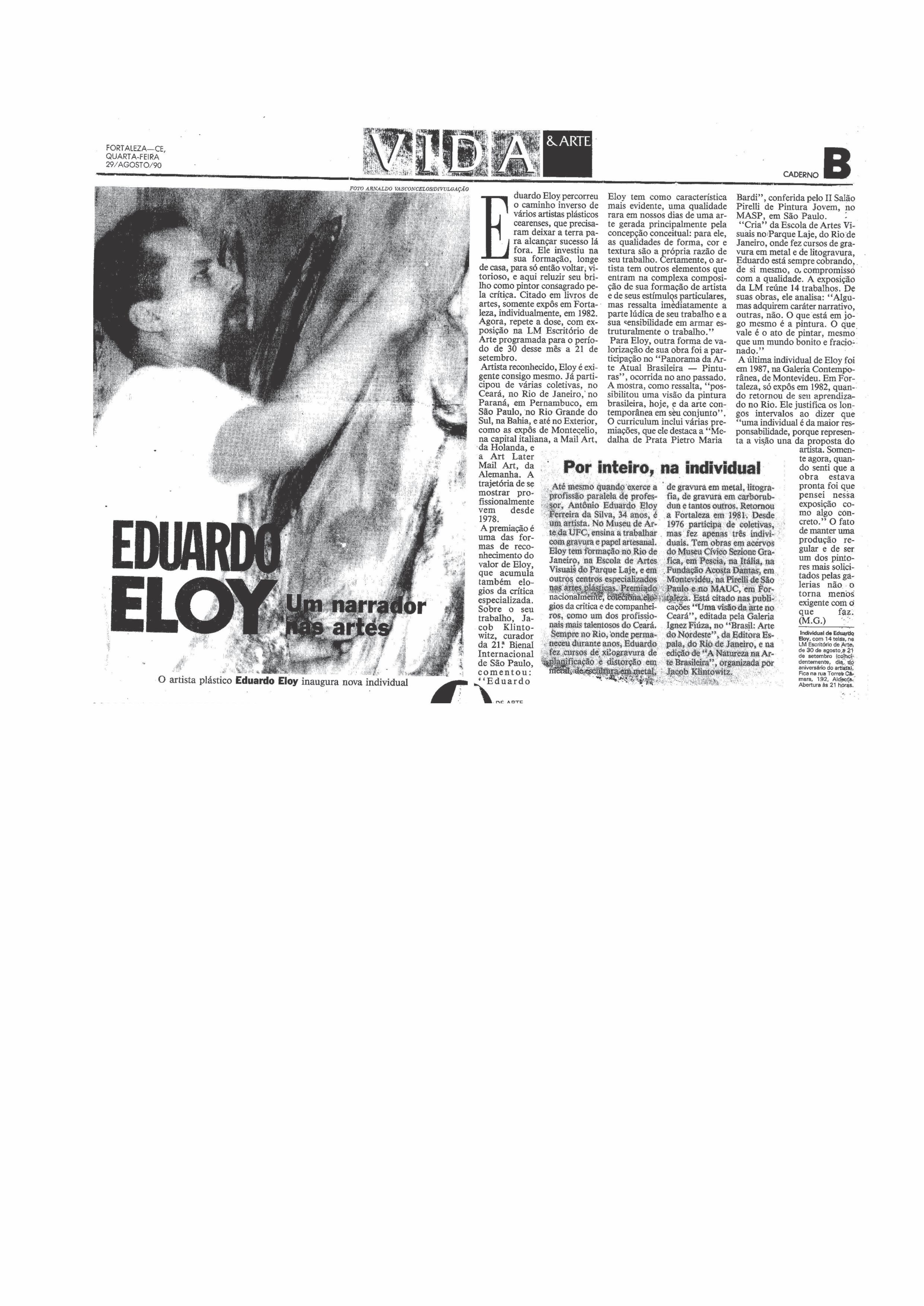 • 1990 Eduardo Eloy – Pinturas, LM Galeria de Arte, Fortaleza.