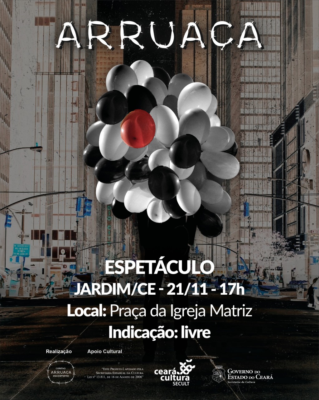 O Coletivo Arruaça Escoamento (2016), investiga experiências no híbrido de linguagens (performance, teatro, dança, artes visuais, audiovisual, música) a partir da relação entre corpo, cidade e os múltiplos aspectos de composição dessa relação. Reúne pessoas vindas de diferentes contextos e aposta numa linguagem que se delineia a partir do encontro com o fluxo de pessoas e acontecimentos que compõem a dramaturgia dos espaços - numa relação expandida - fazendo de cada ocupação um encontro, um acidente que pode nos permitir vivenciar outros olhares e reflexões para o que vem acontecendo em diversas situações cotidianas, voltando o olhar para pensar novos arranjos dramatúrgicos a partir da vivência de seus integrantes para a cultura e região do Cariri.